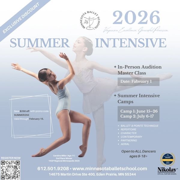 The MBS Summer Intensive Master Class & Audition will proceed as scheduled with Minnesota Ballet School faculty. Dancers ages 9+ are invited to train, receive professional feedback, and audition for MBS Summer Intensive 2026.