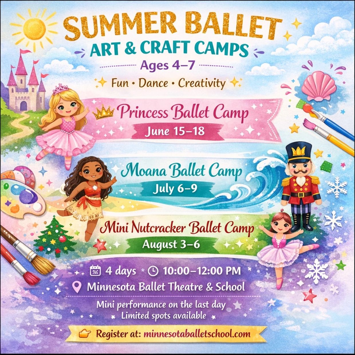 Ballet Art & Craft Camps at Minnesota Ballet School are a magical experience for children of all interests, whether your little one is naturally artistic or just loves to move and play. Campers will enjoy: